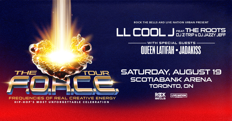 LL COOL J: The F.O.R.C.E. Live Where Scotiabank Arena, 40 Bay St., Toronto, M5J 2X2 Map When Aug 19/23 08:00 PM - Aug 19/23 11:00 PM Age All Website https://www.ticketmaster.ca/event/10005E959A591E76 LL Cool J is coming to Toronto on August 19, 2023! CLICK HERE to get your tickets to the show at Scotiabank Arena!