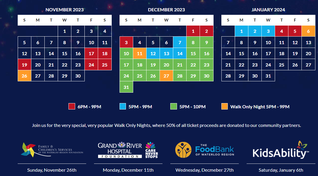 Experience the magic and wonder of Waterloo Region’s most spectacular and dazzling light displays this holiday season. Bask in the beauty and wonderment of Gift of Lights – a drive through experience, featuring over 300 animated and static light displays and light tunnels.