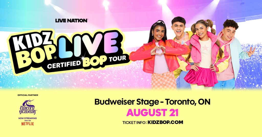 KIDZ BOP Kids Where Budweiser Stage, 909 Lake Shore Blvd W, , Toronto, Ontario, M6K3L3 , Canada Map When Aug 21/25 06:00 PM - Jul 21/25 11:00 PM Age All Website https://www.ticketmaster.ca/Kidz-Bop-Kids-tickets/artist/1852697 KIDZ BOP Kids is coming to Budweiser Stage on Thursday, August 21, 2025! Tickets are available now! CLICK HERE to get your tickets!